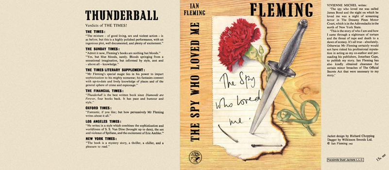 They’re all wonderful, of course, but I have a particular soft spot for The Spy Who Loved Me. The cover is a lesson in composition. The commando dagger is a nice nod to Fleming’s past, and Richard Chopping presents the dagger with such skill that one can almost grab it by the handle. In tribute to Richard Chopping, the cover for my James Bond cookbook, Licence to Cook, was inspired by The Spy Who Loved Me. In my version, the rose was replaced by a tomato and the dagger with an oyster knife.