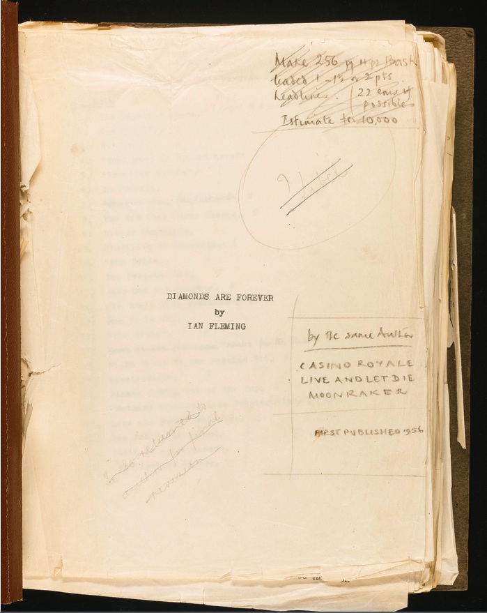 £97,250 Diamonds Are Forever final typescript prepared by Fleming’s secretary Ulrica Knowles. Sotheby’s, 2012