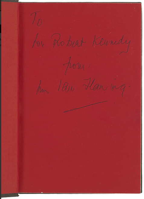 First edition, signed and inscribed by Fleming to Robert F. Kennedy on the front free endpaper.