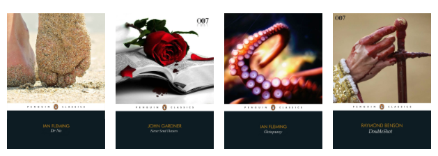 the new Penguin Classics (Dr No, DoubleShot, Never Send Flowers, Octopussy);