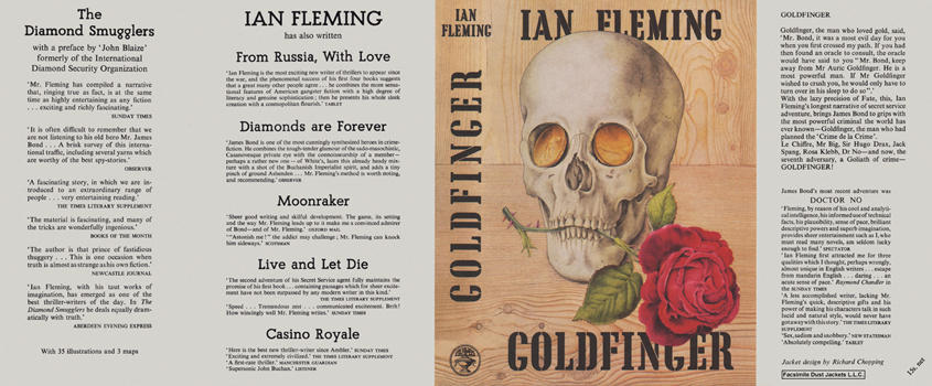 from russia with love richard chopping artwork cover james bond 007Goldfinger is a close second, as I find the image of the skull with gold coins in the eye sockets, evoking the old custom of placing coins on a dead man’s eyes, such a powerful expression of the folly of materialism. It might have been my favorite, but I must admit I am prejudiced somewhat by Fleming’s self-indulgent devotion of 13 chapters in the book to one game of golf.