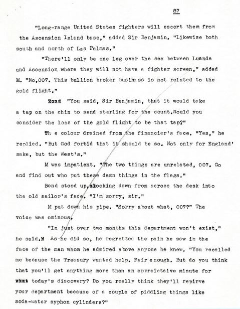 Likewise, Ron talked with the folks at Ian Fleming Publications about whether or not they still had a copy in their files. No. It seems clear someone at Glidrose—the name of the Fleming rights’ holders before they became Ian Fleming Publications—rejected Per Fine Ounce and returned the manuscript to Jenkins. The unanswerable questions at their end will likely remain just who at Glidrose made this call and why they found the book unacceptable. Was it Fleming’s widow who didn’t like the idea of continuation novels to begin with? Peter Fleming? So why did they go with Kingsley Amis instead? There’s apparently no written record to confirm anything.