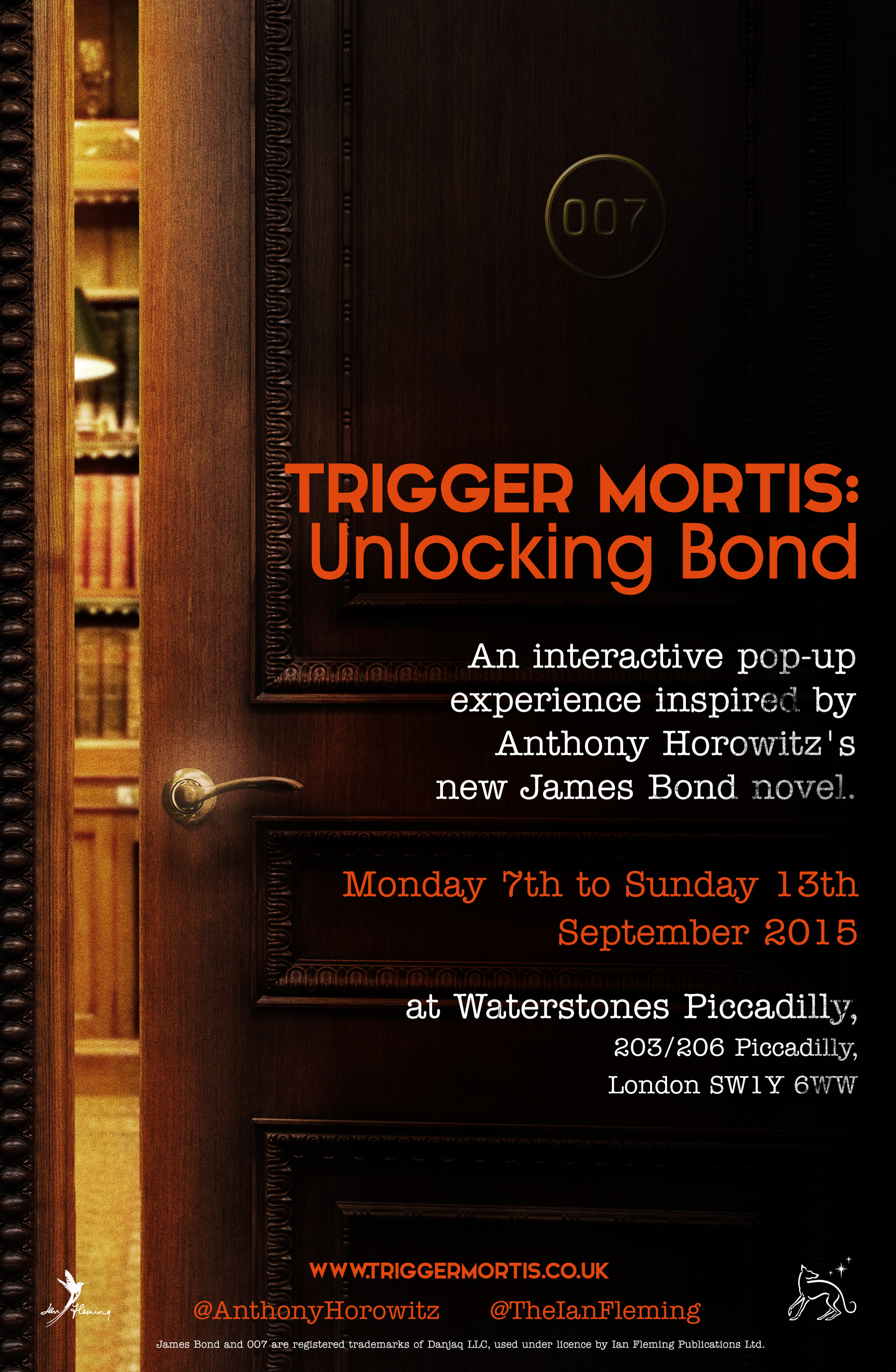 TRIGGER MORTIS: UNLOCKING BOND will be open exclusively to ticket-holders attending the publication launch with Anthony Horowitz on Monday 7th September, tickets for which are on sale through the Waterstones website, then open to the general public from Tuesday 8th September to Sunday 13th September. To browse the pop-up space is free, however to participate in the Trigger Mortis challenge, a copy of the book must be purchased.