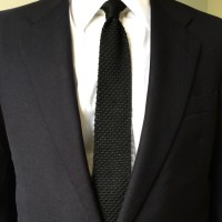 Even in the ’50s and ’60s T&A were quite flamboyant, aiming at a younger fashionable crowd. I would suggest that New and Lingwood, the Eton suppliers, were his haberdashers and that he had opened an account there during his brief spell at the school and maintained it ever since. This black knitted silk tie was purchased from N&L at a time when they were one of the few London stockists.