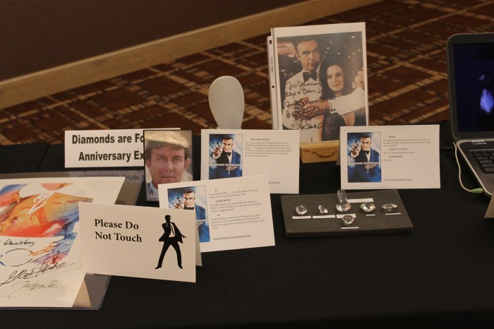 But the professors and students into Bond aren’t shy about challenging or controversial subject matter. Examples from the Diamonds Are Forever panels included a look at latent sexuality and homosexuality in the canon, a critical appraisal of how far the strong heroine Tiffany Case fell from the Fleming novel to become the dumb floozy of the film, a look at the scorpions of Diamonds as representing power, racism and the diamond smuggling pipeline, and Dr. Buckton’s own treatment of the “John Blaize” material from Fleming’s The Diamond Smugglers that became the backbone of his fan favorite, Diamonds Are Forever.
