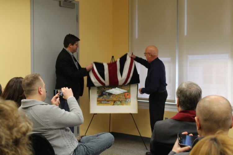 Last year, the International Spy Museum in Washington DC commissioned Gerry to provide them with an original artwork. On December 30, Gerry and I brought more than 20 Bond fans to a private unveiling of “A Deadly Career” at the museum. To celebrate, our fan group enjoyed a private sale of Gerry’s artwork, toured the museum’s 50 Years of Bond Villains exhibit, and attended the International Spy Gala together.