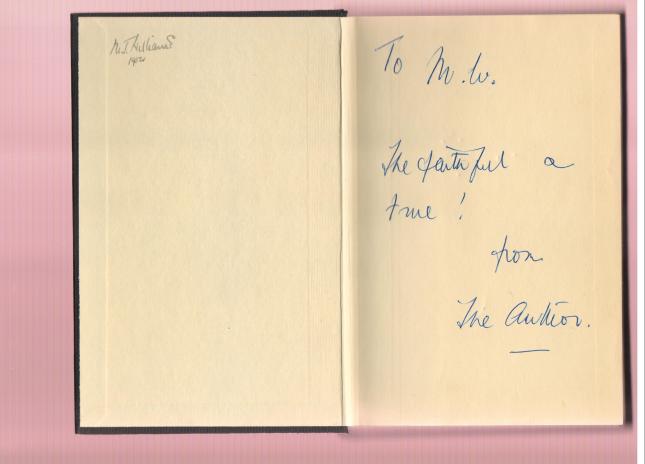 With an additional ownership inscription and date (1954) of M J Williams on the front paste-down. Muriel Williams (often referred to as MJW or MW) was Fleming’s Assistant at Kemsley Newspapers when he was the Foreign Manager. She was responsible for the day-to-day running of the Department in particular liaison with the “stringers” who, from far-flung parts of the World, submitted stories for inclusion in the Kemsley Publications (including the Sunday Times).