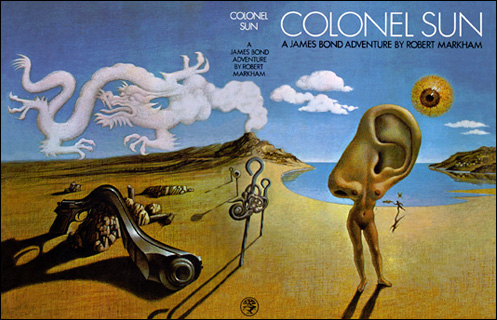 Tom Adams is perhaps more famous for his Agatha Christie book covers and is a legend of the field. He also is a master of the Trompe L’oeil style, notably for covers for John Fowles’ The Collector and the Dali-esque cover for Kingsley Amis’ (writing as Robert Markham) James Bond continuation novel, Colonel Sun.