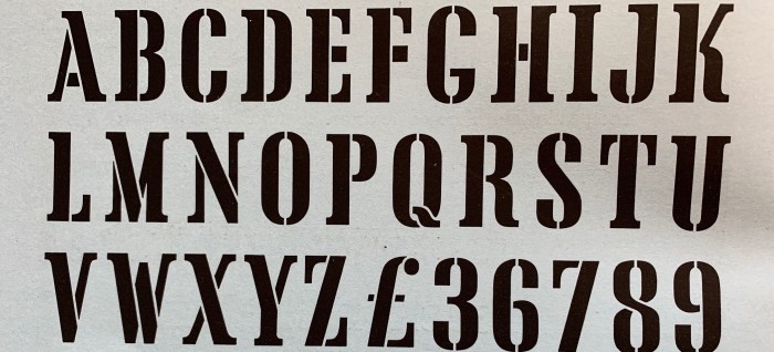 And yes, I agree that it’s an iconic font, because it conveys images of weapons crate stenciling, exotic teas from faraway lands, military equipment stenciling (slightly).