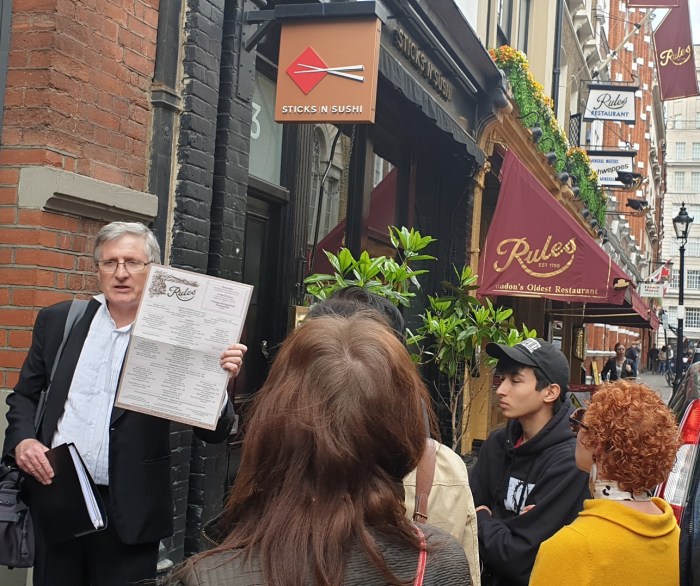 From there, the tour went past the National Gallery, as seen in Skyfall where Bond meets Q and through Covent Garden and its environs including, as Mr Thomas pointed out, a secret literary club, past David Niven’s club, The Garrick and Rules Restaurant where M dines in 2015’s Spectre up to the Savoy Hotel and through to Somerset House.