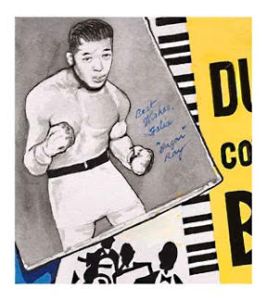 The world of boxing was discussed while Bond and Leiter were at Sugar Ray’s – the eponymously named bar on Seventh Avenue and 123rd Street – where the walls were covered with photos of Sugar Ray Robinson, at the time one of the world’s great boxers. That demanded an autographed photo of Sugar Ray, as a souvenir for Leiter. When Bond and Leiter finally made it to Mr. Big’s bar – aptly named The Boneyard – there the “sour-sweet smell” of marijuana “rocked them as they pushed through the heavy curtains inside the swing door.” Leiter tells Bond, “Most of the real hep-cats smoke reefers.” So a leaf cluster of the ‘green leafy substance’ made it’s way to the layout…