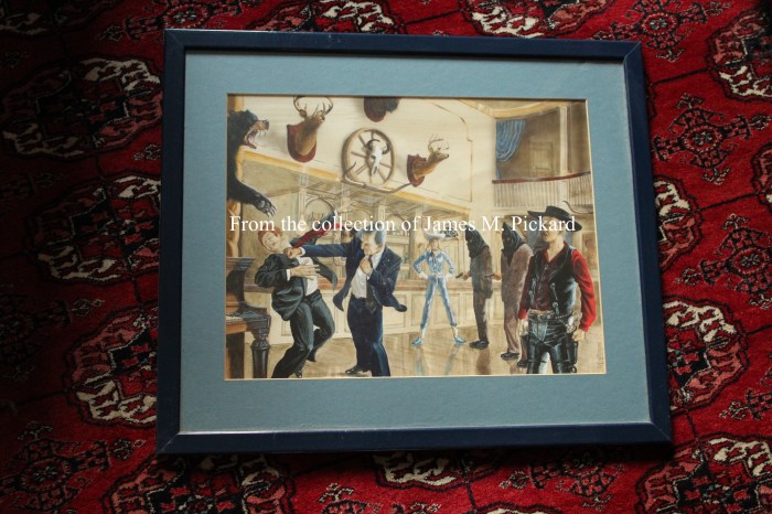 From the personal collection of James M. Pickard are these stunning original paintings by the noted Los Angeles artist George Almond (famous for his cover artwork for Bondage 18). James commissioned these paintings from George in the late 1980’s and they have been proudly displayed in his 007 collection since that time. James has now taken the decision to offer these paintings for sale advertising them via Artistic Licence Renewed.